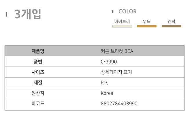 코텍 커튼 브라켓 25파이(25mm) 3개입