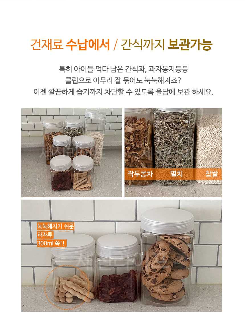 과자나 건재료를 깔끔하게 습기 없이 보관할 수 있습니다.