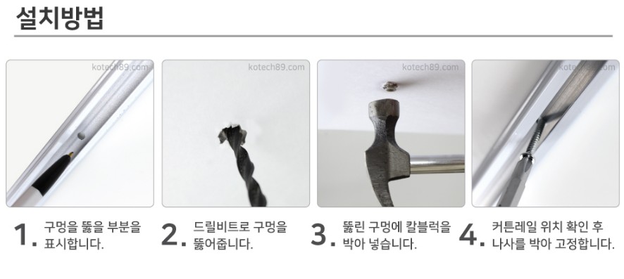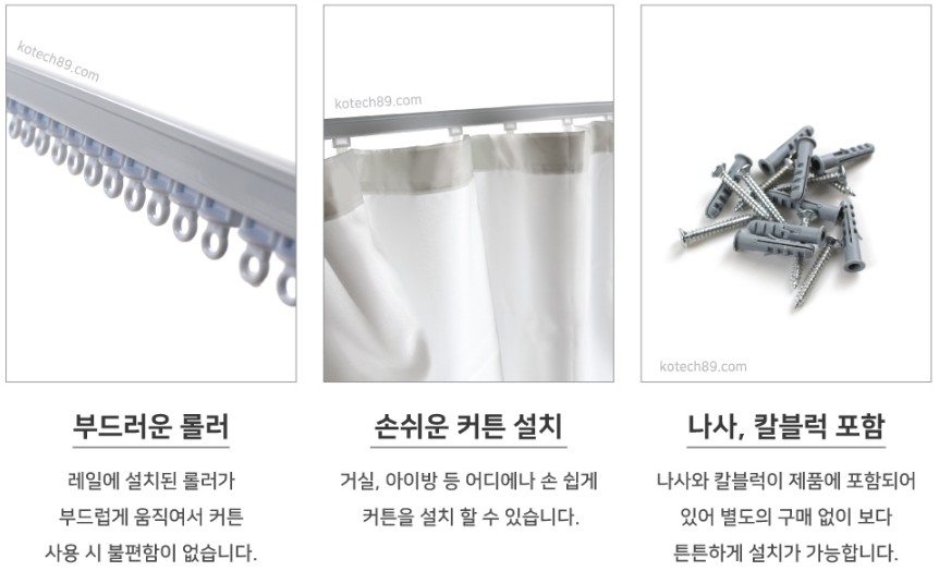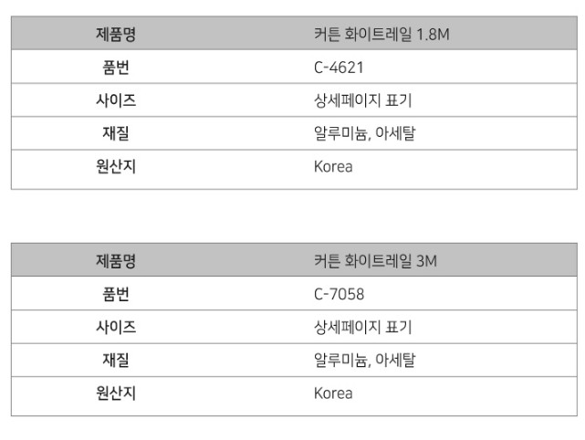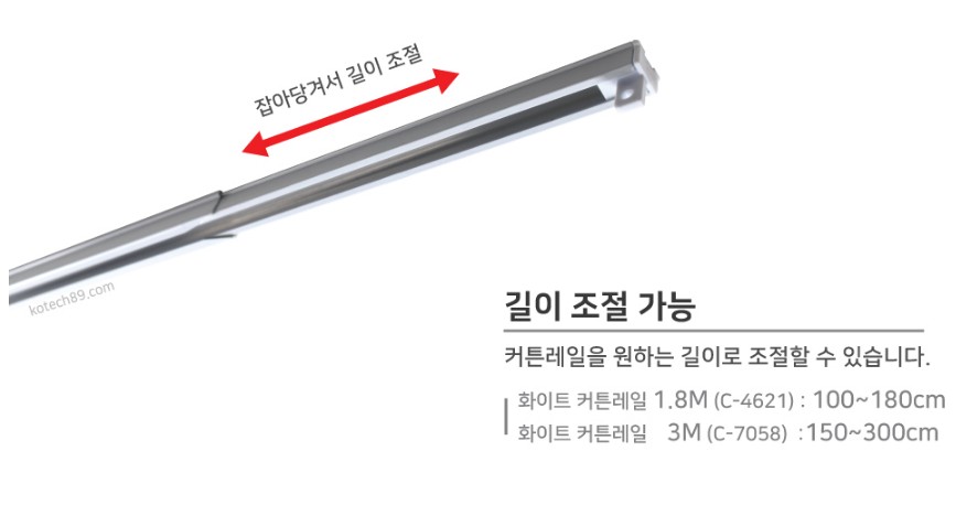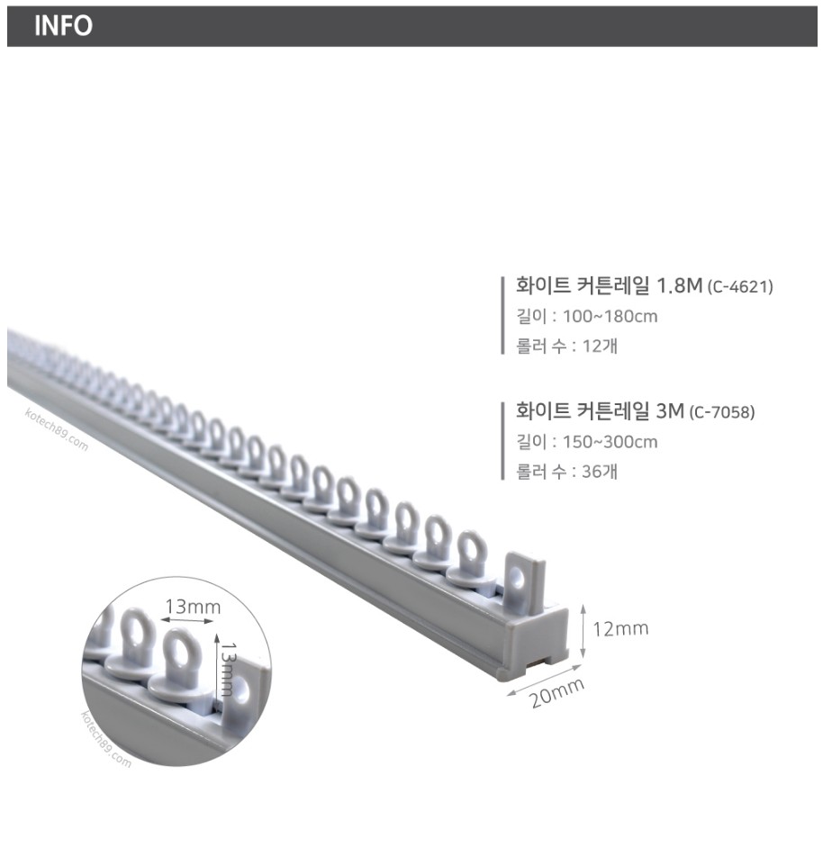 코텍 커튼 화이트 레일 단선 3m (7058)