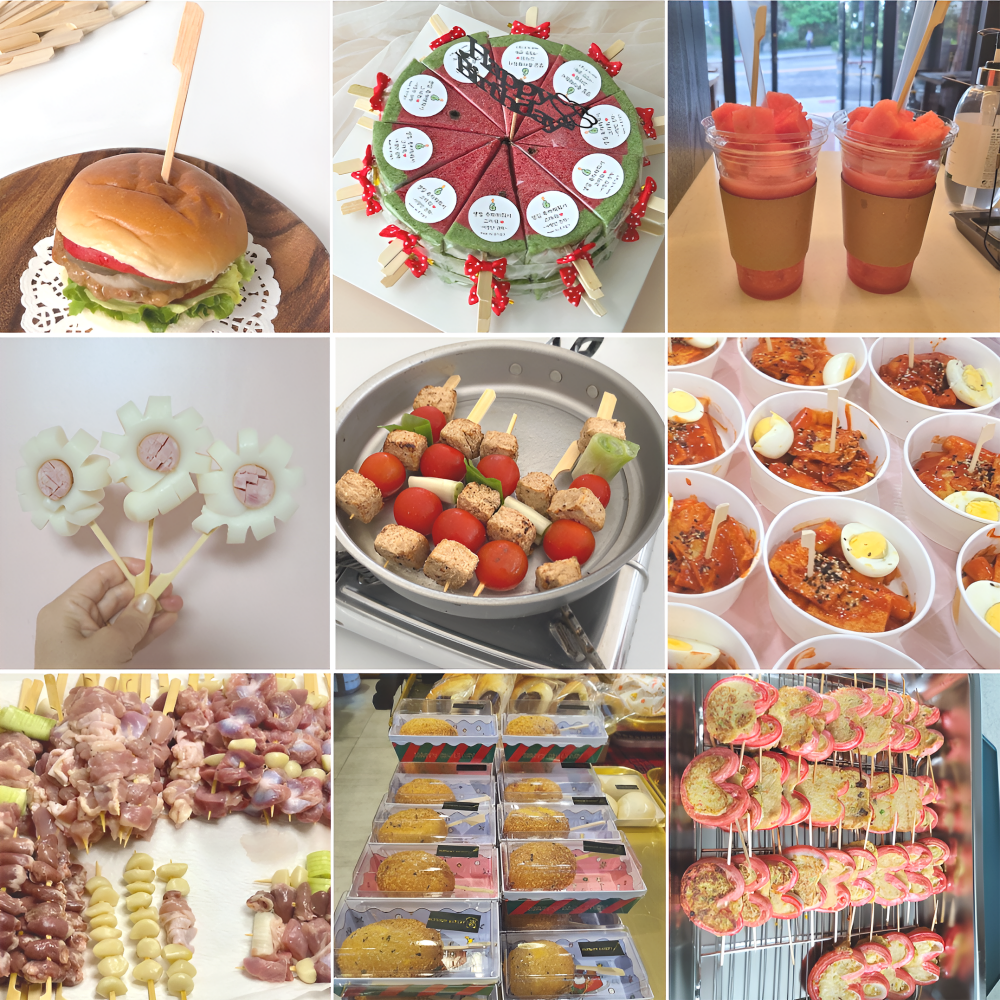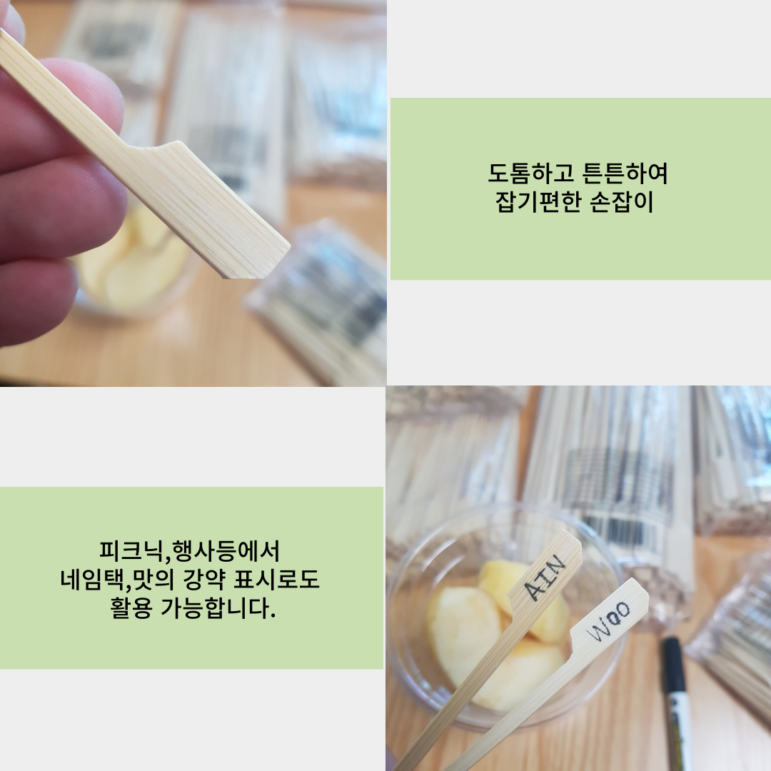 대나무 손잡이꼬지 꼬치 10cm 100개 캠핑 소세지 햄버거 일회용 나무 꼬치 막대 꽂이